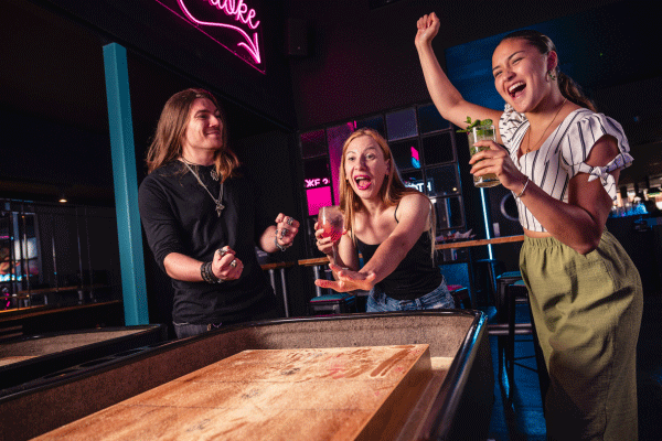 From shuffleboard showdowns and Crazier golf course thrills to karaoke sing-alongs and AR darts, there’s an indoor game for everyone at BOOM. And for those looking to go the extra mile, our range of add-on options means you can create a fully bespoke experience. Think welcome drinks receptions, mocktail bars for younger guests, custom decorations, or even entertainment packages to take your celebration to the next level. Let’s not forget about the food and drink. Our street food-inspired BOOM BITES menu is packed with crowd-pleasers that guests of all ages will love. We can also discuss