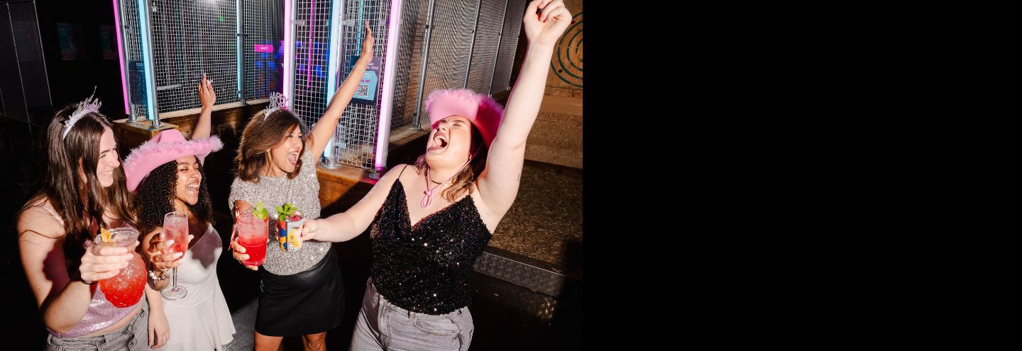 Pucker up Buttercup! Are you ready to FEEL THE BOOM™? Get set for the time of your life, the Battleground has arrived! Battle it out with a mate or a date with our selection of games including Augmented Reality Axe Throwing, American Pool, Augmented Reality Darts, Beer Pong, Shuffleboard & much more! Why are you still reading this? It’s time to get booking.